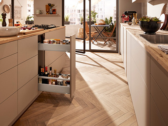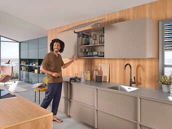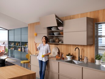Nos solutions font de l'ouverture et de la fermeture des meubles une véritable expérience et augmentent le confort de mouvement dans toute la maison, notamment dans la cuisine.